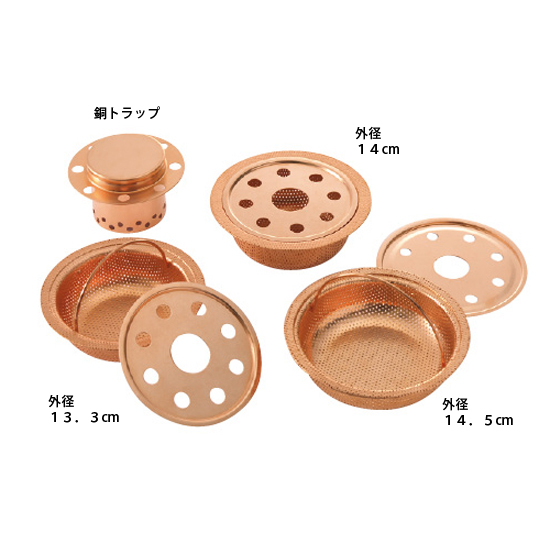 ●サイズ:外径13.3cm・外径14.5cm=深4cm、外径14cm=深5cm、銅トラップ=径10.4×高6.5cm