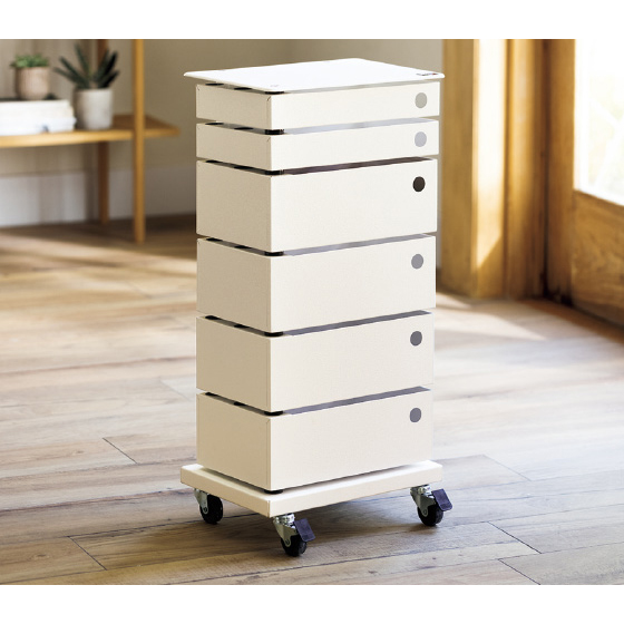 スチール加工を得意とするイタリアメーカーの本格派。上品な佇まいが魅力。キッチンやリビング、ワークスペースの小物整理に。キャスター付きで移動もラク。