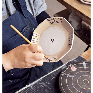 侘び寂びを感じる唐草と十草を、職人が一つ一つ手描き。