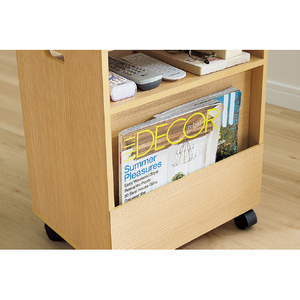 小物が入るフリースペースも。背面には雑誌や新聞を立てて収納できます。