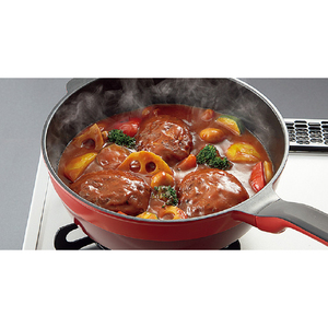 ほどよい深さで、焼き目を付けてから煮込むなどの料理もOK!ガラス蓋で調理中の様子がわかりやすいのも便利。