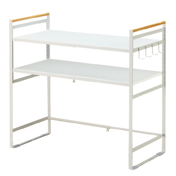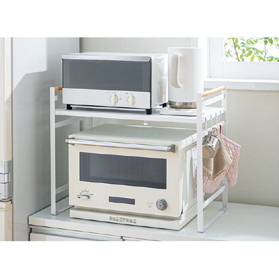 組み立てに苦労するかと案じましたが、90の婆さん一人でも何とかなりました。色も置き台と合っているし、高さも置きたいcd プレイヤーとトースターにピッタリ!文字通りお誂え向きの逸品でした。 フックには鍋つかみやコーヒードリッパー、茶漉しなどを引っ掛けるのに便利です。