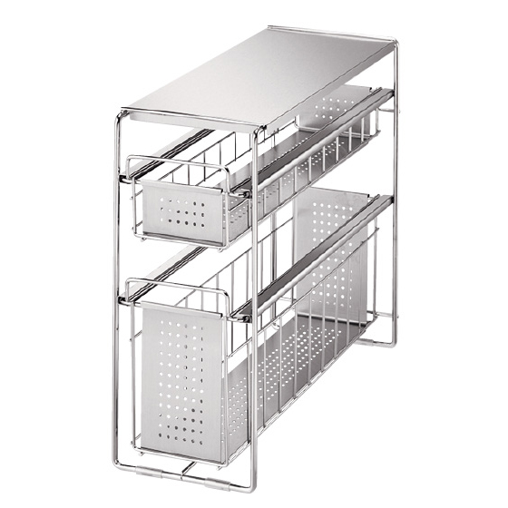 シンク下をムダなく使う!スライド式で奥の物も出し入れ簡単です。