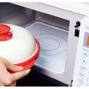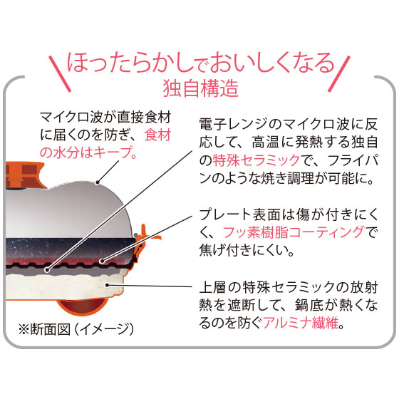 ●材質:本体=アルミメッキ鋼板(フッ素樹脂コーティング)(本体内面:フッ素樹脂塗膜加工)・SPS(シンジオタクチックポリスチレン)・セラミック・アルミナ繊維・シリコン、蓋=アルミメッキ鋼板(セラミックコーティング)・SPS(シンジオタクチックポリスチレン)
