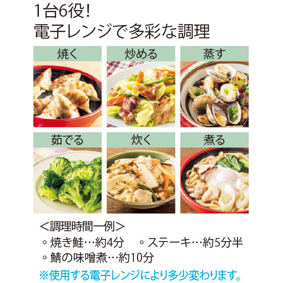 本当なんです、写真の鮭もギョウザもレンチンしただけなのに、まるでフライパンで焼いたみたいにおいしい!火を使わないから安心で快適。キッチンから離れて他の家事もできます。蒸したり煮たり、ご飯を炊いたりといろいろできるから、1品追加したいときも重宝です。レシピ通りに使用するだけで調理は簡単、失敗しにくく料理のレパートリーも広がります。