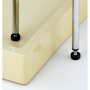 防水パンをまたいで高さ調整できるアジャスター付き。棚板はお手入れ簡単なステンレス製。取り外して洗えます。