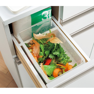 引き出しの内部には、生ごみ用容器付き。ごみ袋用スペースも。