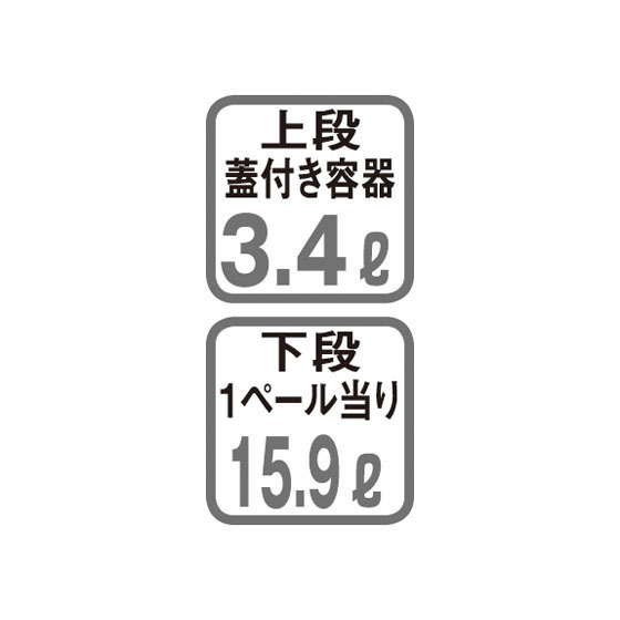 ●ペール容量:上段=3.4L(蓋付き容器)・下段=15.9L(1ペール当り)