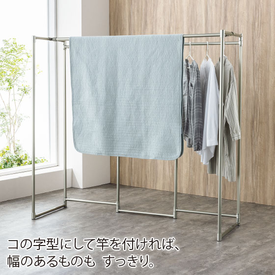 部屋干しをすっきり見映えよく。長めの衣類も干せるハイタイプ。