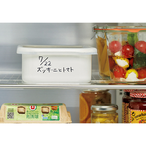 冷蔵庫なら発酵速度が緩やかに。毎日かき混ぜる必要もありません。庫内にすっきり入り、日付や内容をペンで書いて消せます。
