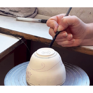 チェコ共和国の北西部・ドゥビで製造される、世界3大ブルーオニオンのひとつ。ボヘミアンブルーのインクを銅版印刷した転写紙と手描きを組み合わせて、手作業で柄を施します。美しい白地に映える色鮮やかなコバルトカラーは、愛好家の賞賛の的です。