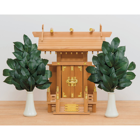 本物のようにリアルな葉。榊全体に光触媒加工を施しています。