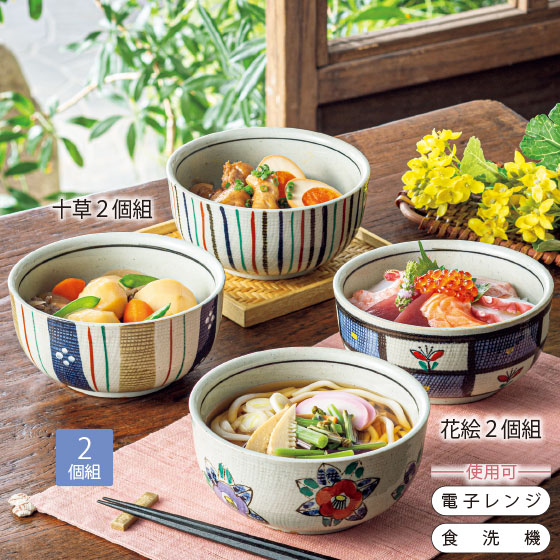 丼ものや麺類はもちろん、ふつうのどんぶりより少し浅めで、おかずの盛鉢としても活躍する使い勝手のよい形状。表面は布目調仕上げで、味わいのある表情も魅力です。
