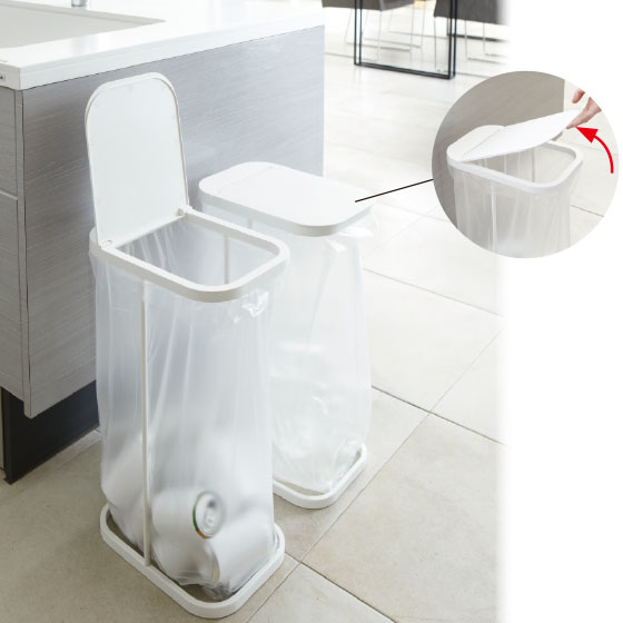 装着は、上からごみ袋をかぶせるだけ。捨てる時は、手前から引き出します。