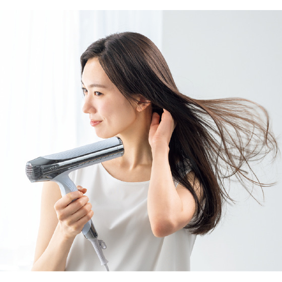 新型モーターと、より広く風を届ける構造で、髪を速く、美しく乾かすヘアドライヤーを実現。