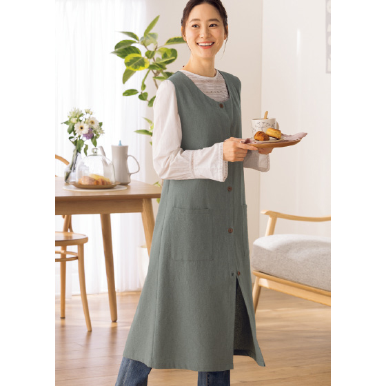 自然なシワ感が魅力の綿100%素材。ボタンを開けて、ジレ風に着こなしても。