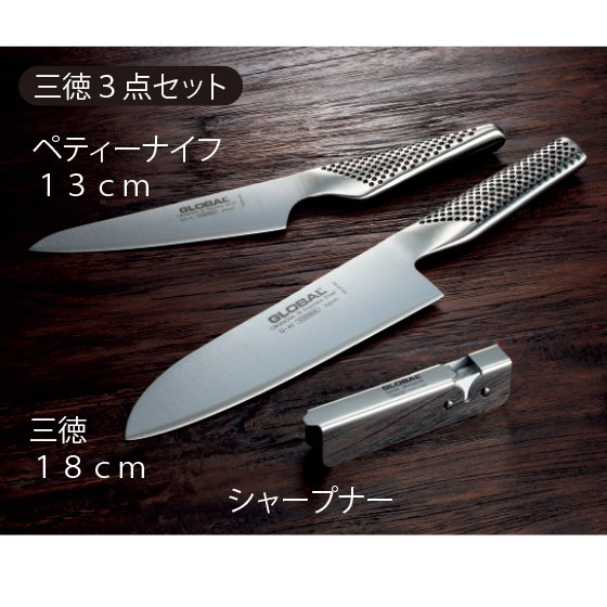 ●重量:ペティーナイフ13cm=110g、三徳18cm=175g、シャープナー=65g