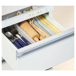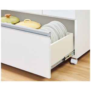お鍋や大皿、土鍋などを収納してもフルスライドレール付きでスムーズに開閉。