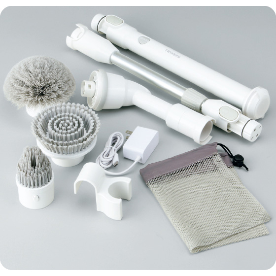 ●材質:ハンドル・回転ヘッド=ABS、伸縮ポール=アルミ、ブラシ=PBT