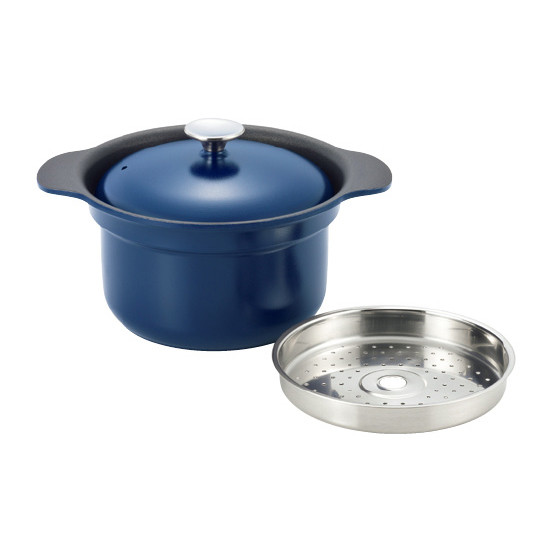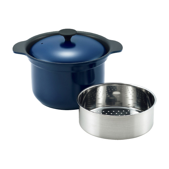 ●材質:本体・蓋=アルミニウム合金(内面/フッ素樹脂加工・外面/焼付塗装)、スチームプレート=ステンレス鋼、ツマミ=小/ステンレス鋼、大/フェノール樹脂