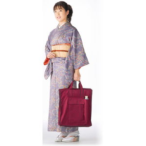着物を吊り下げた状態で収納し、シワや型崩れを防ぎながら持ち運べる安心設計です。天板入りでバッグがつぶれにくく、小物収納に便利なポケット類も豊富。着物を愛用する人の気持ちに寄り添い、隅々まで思いやりが施されています。