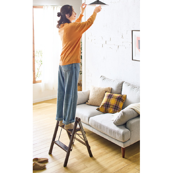 厚さわずか4.8cm!すき間に収納できます。木目調で室内になじみやすい。高い場所の作業やお掃除にも。