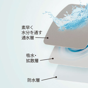 繊維の老舗、ユニチカ(株)の技術により、約2mmという薄さながら驚きの吸水性を実現。