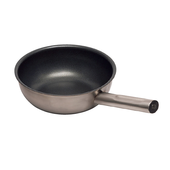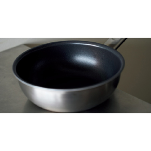 ●材質:三層鋼アルミクラッド材(18−8ステンレス・アルミ・18−0ステンレス)、内面=フッ素樹脂加工、ハンドル=18−8ステンレス