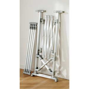たたむと約8cmの薄さで、場所を取らずに収納できます。アルミ製でサビにくく丈夫。