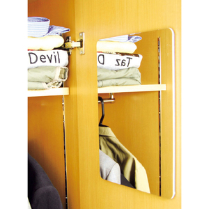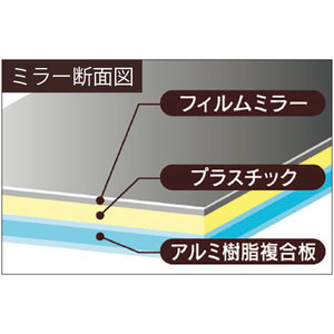 プラスチックとアルミ樹脂複合板の張り合わせにより軽量化。ゆがみの少ない樹脂製ミラーです。