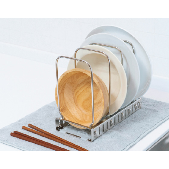※食器やフライパン・鍋の形状によっては、使用できない場合があります。水切りとしてご使用の際は下にふきん等を敷いてください。