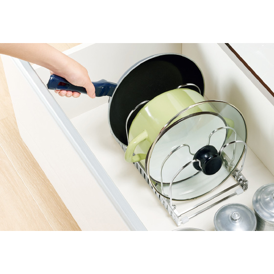 ●ディッシュスタンド=仕切り6個・ゴム足4個付き、フライパンスタンド=仕切り4個・ゴム足4個付き