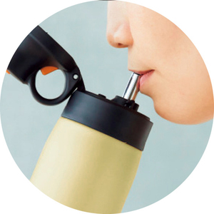 ストロー式と聞くと、お子様用のボトルを連想される方も多いですが、実は大人の方にもとても便利なのです。理由は飲む時に顔を上げて傾ける必要がないから。こぼしてしまう心配もなく、どこでもサッと飲むことができます。マスク着用時に、取らずにずらすだけで飲めるのもうれしいポイント。