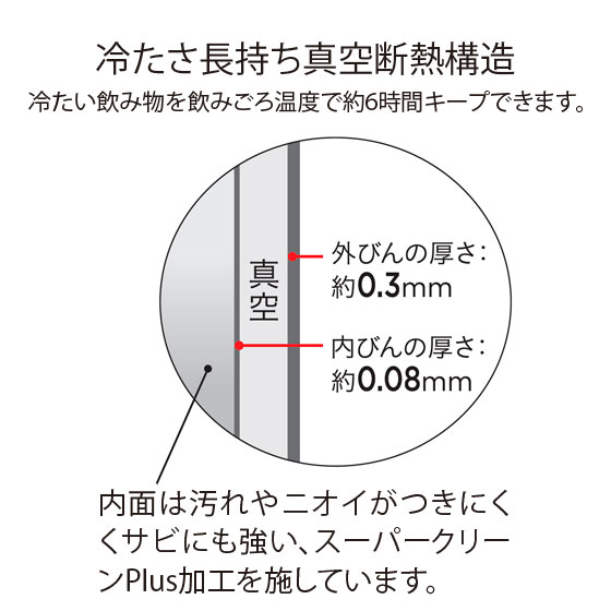 ●材質:本体=ステンレス鋼、中栓=ポリプロピレン(銀系抗菌剤入り)、パッキン=シリコーンゴム、ストロー=ステンレス鋼、底=ポリプロピレン