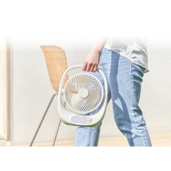 充電式で軽量、持ちやすいハンドル付きと、機動性もあり、あちこち持ち運べるファン。エアコンが効きにくいところや個室など、欲しいところに涼風を!調光可能なLEDライトはアウトドアや災害時の備えにも。