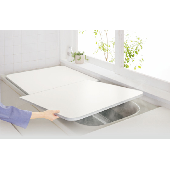 凹凸の多いジャバラ式の風呂蓋は、重いし洗うのも大変…。「もっと軽くて、清潔さを保ちやすい風呂蓋はないの?」とお悩みなら、本品に取り替えてはいかがでしょうか。平らなパネルタイプなのでお掃除しやすいうえに、汚れがつきにくいよう表面にはエンボス加工をしてあります。保温性にも優れているため、お湯が冷めにくく省エネ対策にぴったりです。また、軽くて好評だった従来品より、さらに約10%の軽量化に成功。いつでも清潔&快適なバスタイムを実現してくれそうです。