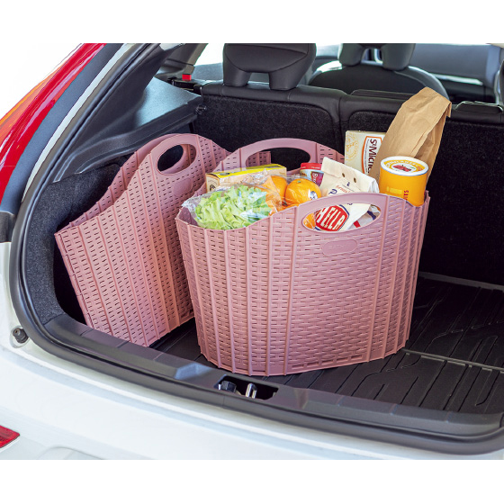 使わない時はコンパクトにたためる、ランドリーバスケット。洗濯物だけでなく収納カゴにも便利。車での食料品のお買い物や、荷物整理などにも活躍します。