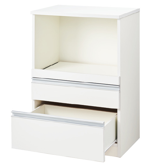 ●材質:天板・スライド棚=ポリエステル樹脂化粧合板、前板=鏡面ポリエステル化粧繊維板、その他=プリント紙化粧繊維板
