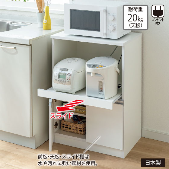 前板・天板・スライド棚は水や汚れに強い素材を使用。