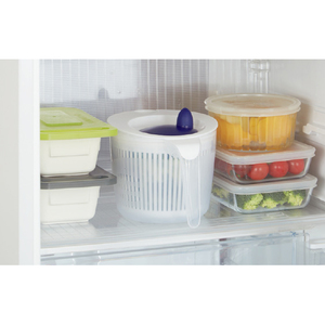 野菜の水気を切ってそのまま冷蔵庫で保存可能なコンパクト設計。