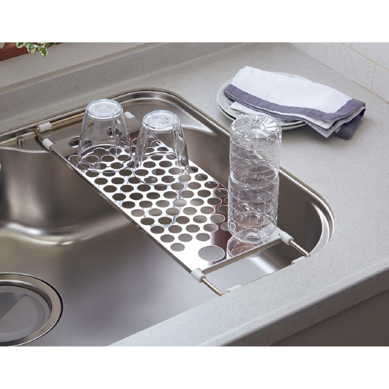 好評だった従来品より開口率がアップし、水切れがさらによくなりました。食洗機で丸洗いできる清潔なオールステンレス製なので、野菜の水切りにも。洗ったボトル類をごみの日までに乾かせるのも嬉しいですね。デザインもすっきりおしゃれ!