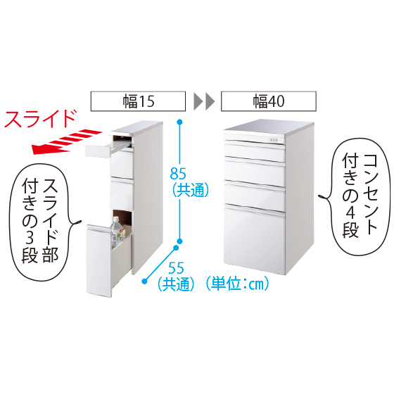●サイズ:奥55×高85cm(共通)