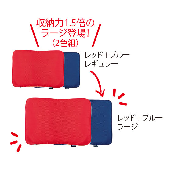 ●サイズ:幅37(レギュラー)・46(ラージ)×奥28.5(レギュラー)・34.5(ラージ)×高4(未使用時)・10(ファスナー閉じ時)・15(ファスナー開き時)cm