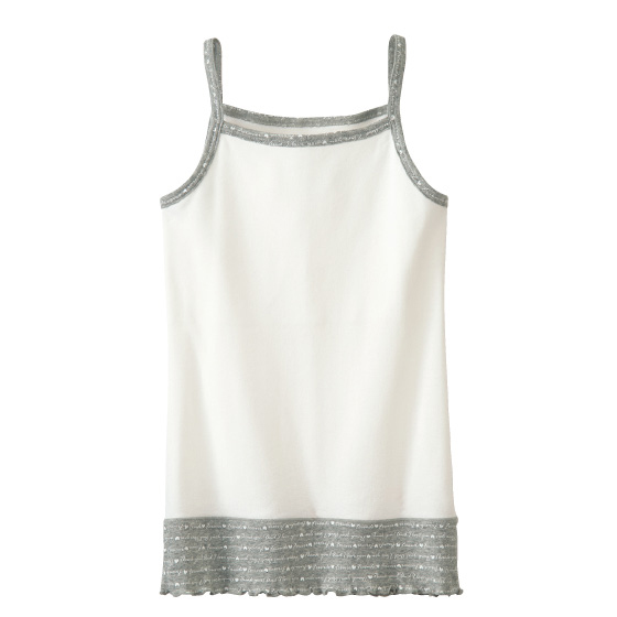 さりげなくバストをカバー。裏側の当て布端にゴムなどを使用せず、やさしい肌触り。