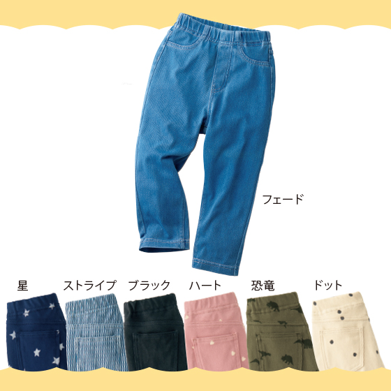 ●素材:綿57%・ポリエステル33%・ポリウレタン10%(ニット、ニットツイル・ヨコのび)、フェード・ストライプ=綿55%・ポリエステル35%・ポリウレタン10%(ニット、ニットツイル・ヨコのび、製品洗い加工)