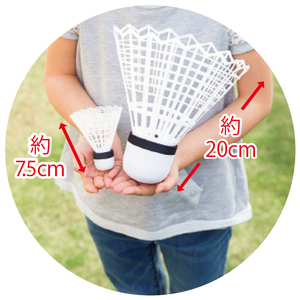 シャトルのサイズは通常の約10倍。風の影響を受けにくく、小さなお子さんでもラリーが続きやすく盛り上がること間違いなしです!