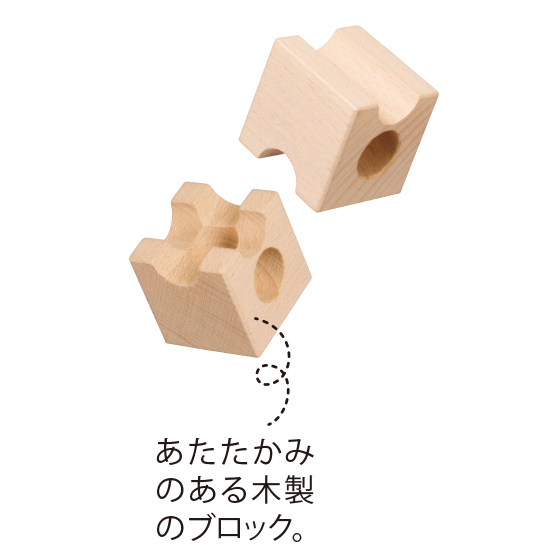 ブロックを積み上げてルートを作り、ビー玉を転がして目的地にゴールさせるのが基本ルール。遊んでいるうちに自然と仕組みを理解して、プログラミング学習の一環に!