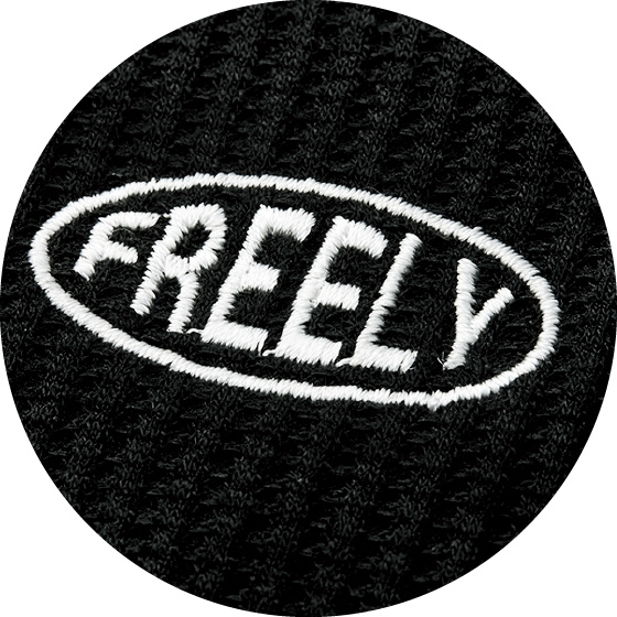 胸の刺繍がアクセント。表情のあるワッフル素材のロンT。