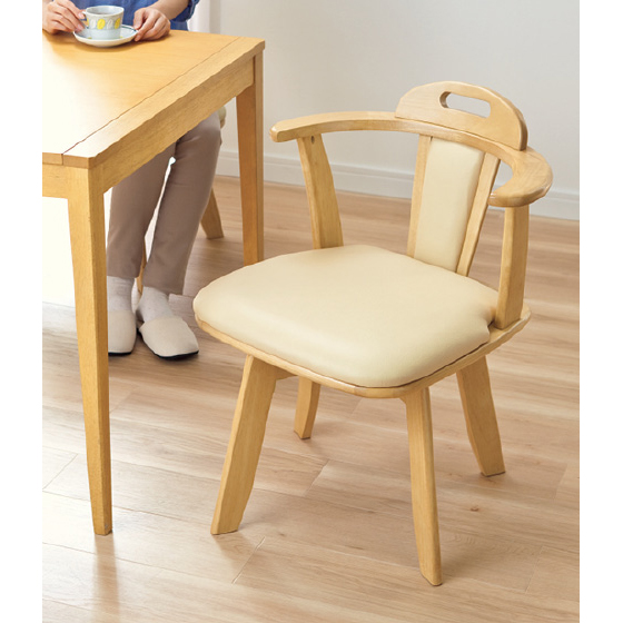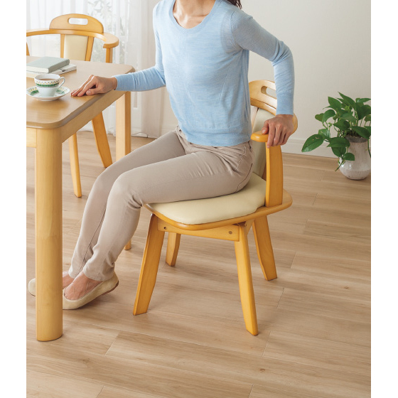 回転するから椅子の引きずりを軽減!ひじ掛け付きで立ち座りがラク!