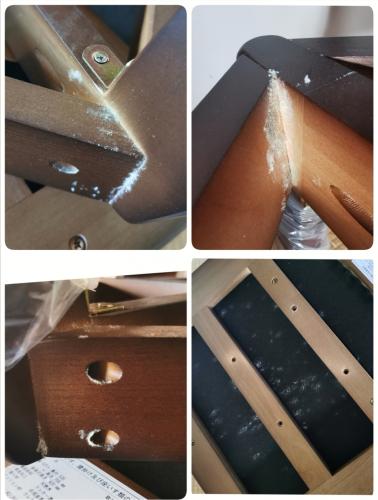 ネジがゆるんだり外れたり、ガタガタしたり、木が割れたりしてます。